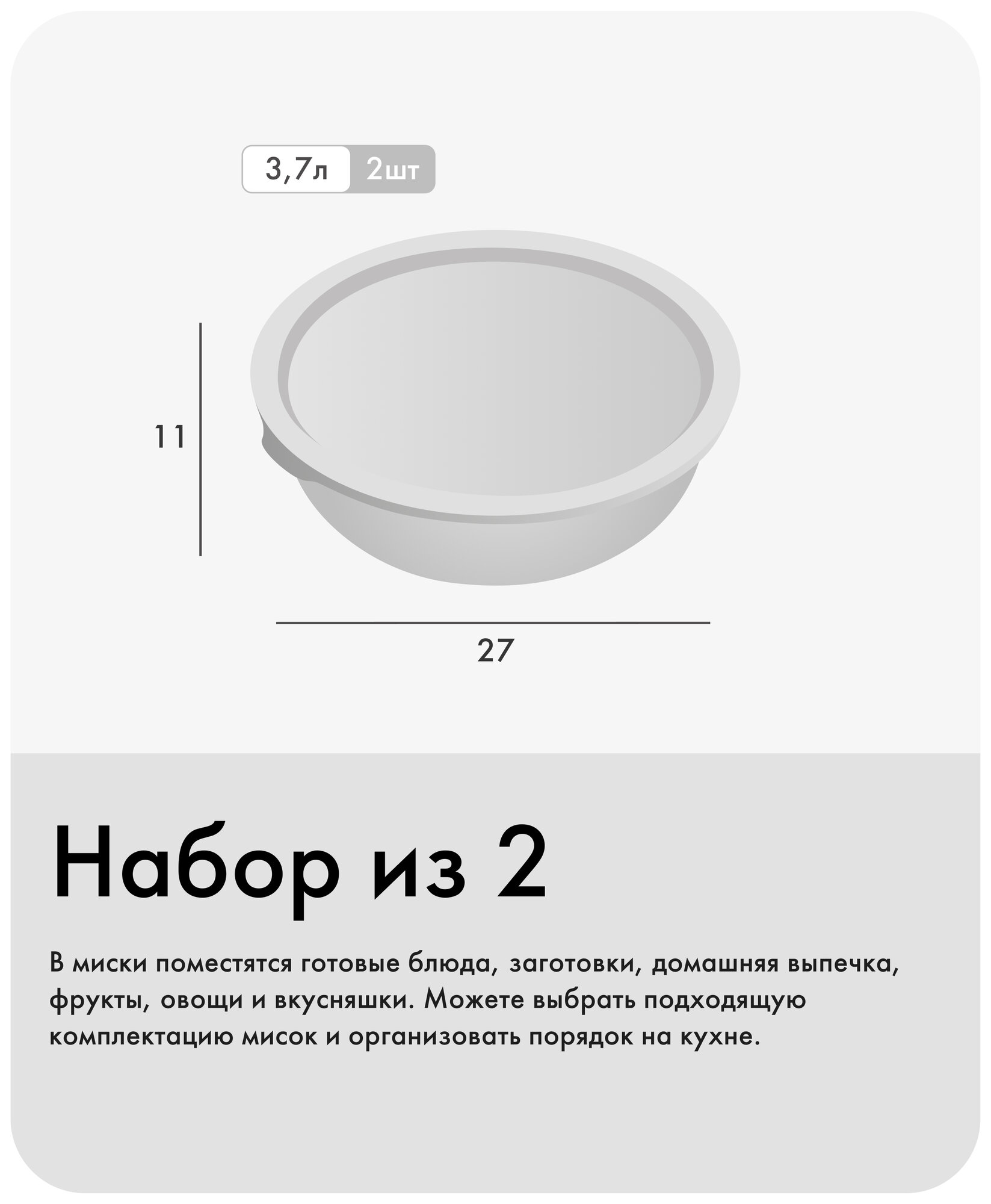 Набор мисок с крышками «Шарм №16», Альт-Пласт, 3,7л (2шт), пластик, серый информация: