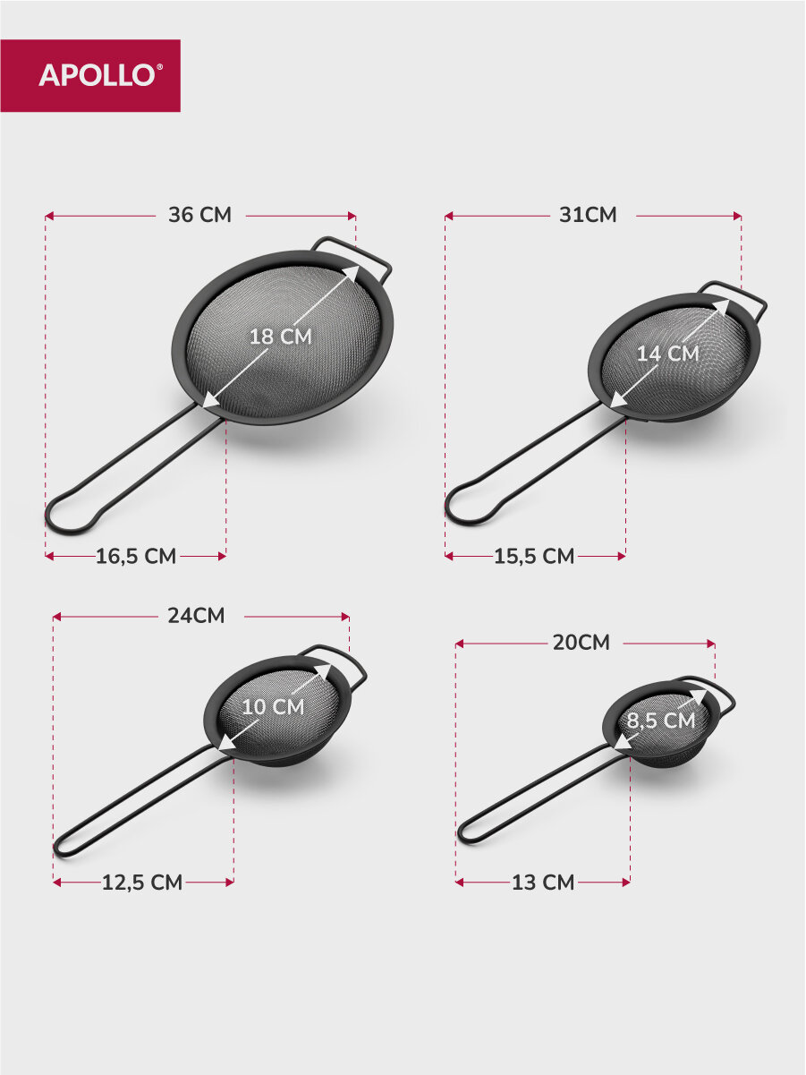 Сито для муки металлическое Apollo "Grande", 4 предмета, диаметр 8-18 см информация: