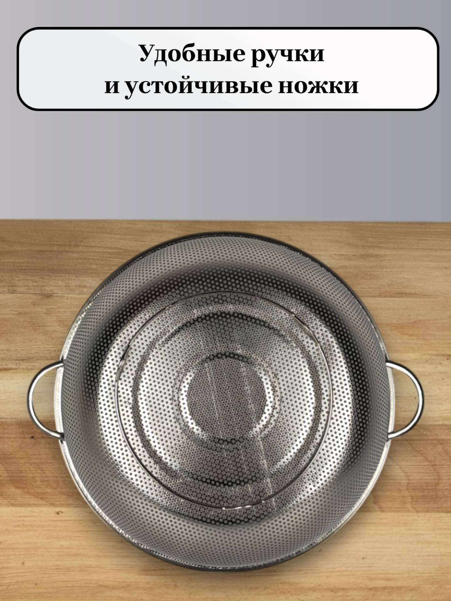 Дуршлаг из нержавеющей стали с двумя ручками, диаметр 40,5см, объем 15л информация: