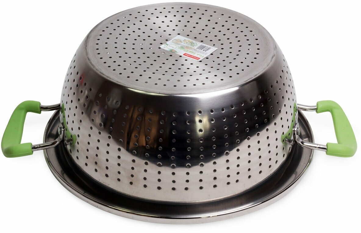 Дуршлаг 26 см. из нержавеющей стали Kamille KM 4359 с двумя силиконовыми ручками (4359 / зеленый) информация: