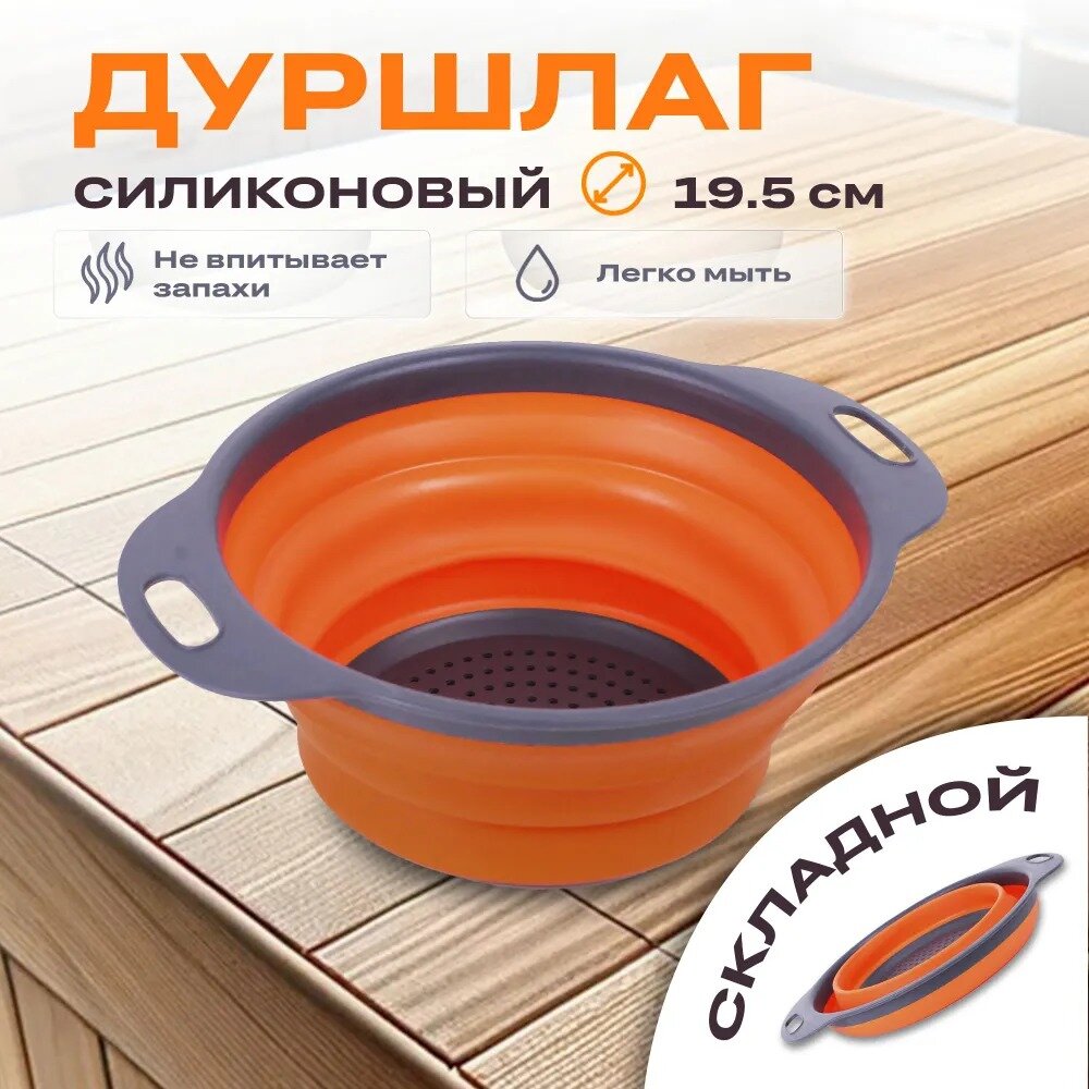 Дуршлаг складной силиконовый TAKARA NT1601 оранжевый 2,5л, 19,5 см, сито с ручками для круп, макарон овощей и фруктов информация: