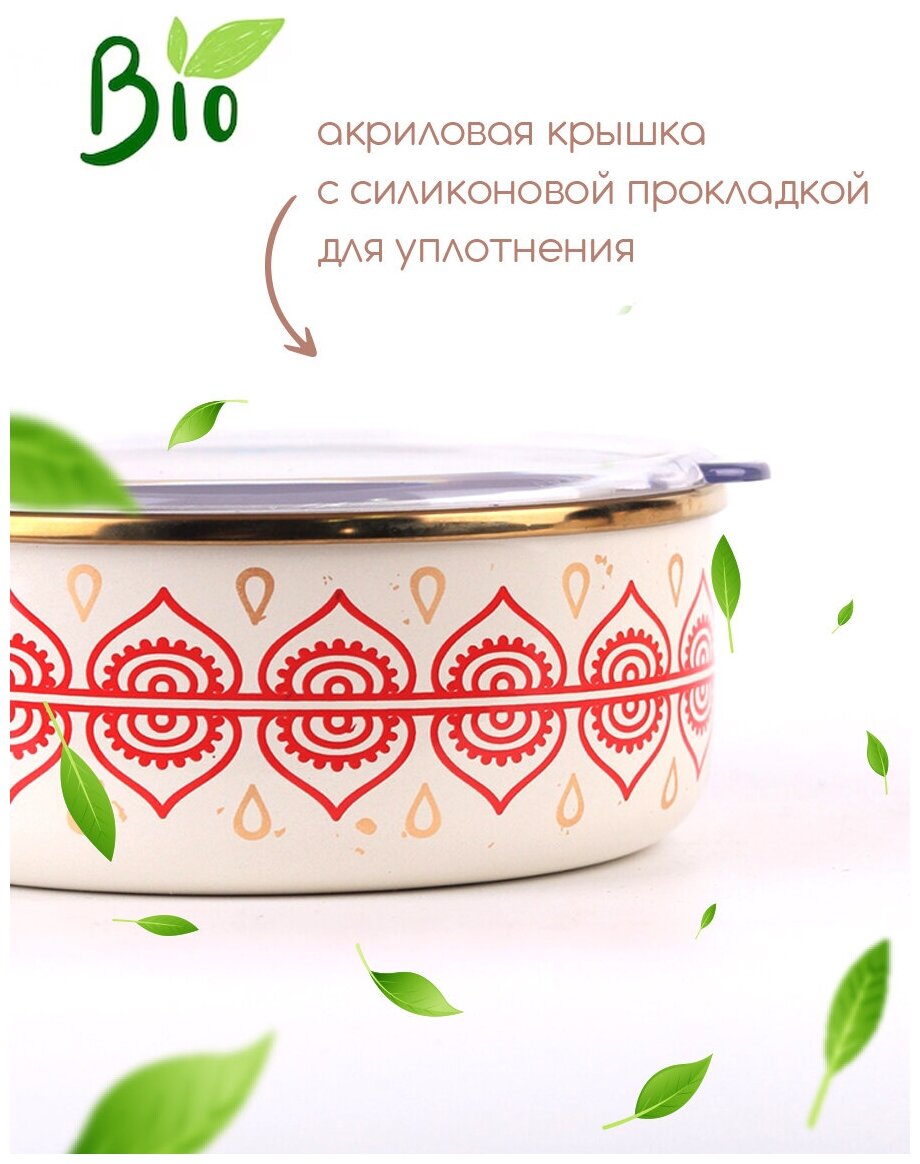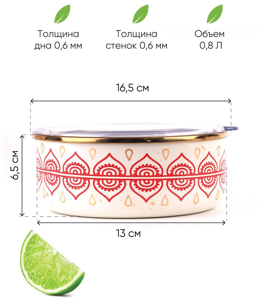 Миска эмалированная 16 см, 800 мл, акриловая крышка, Сияние, красный, Катюша, арт. 2022-080-2 информация: