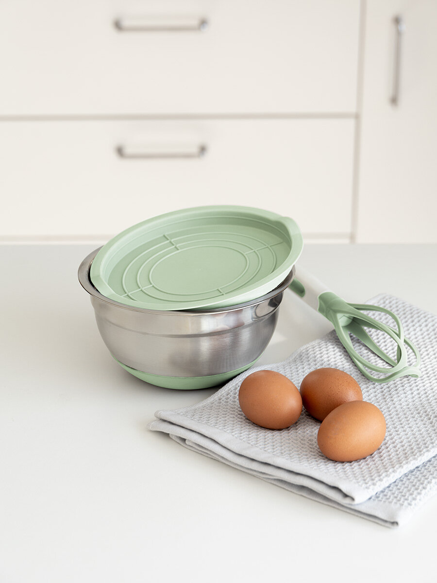 10 цен на Миска для смешивания продуктов с крышкой DeNASTIA силиконовое дно D18, цвет мятный A000231