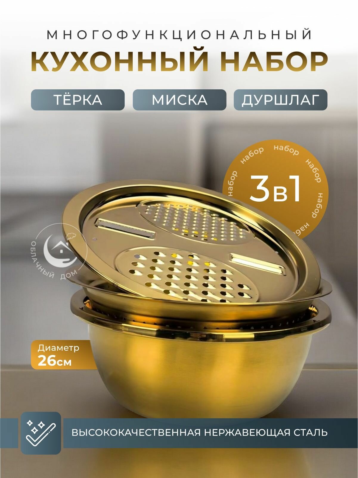 10 цен на Кухонный набор Миска, Тёрка и Дуршлаг