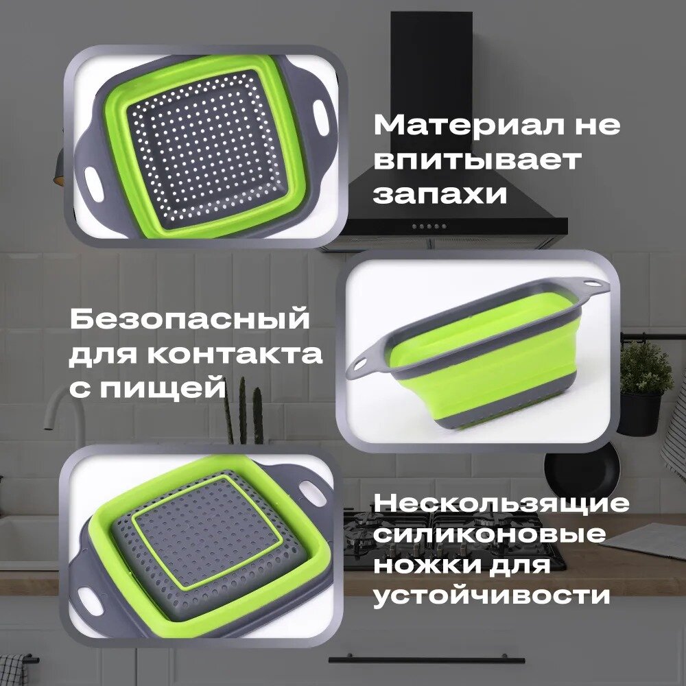 Дуршлаг складной силиконовый TAKARA NT1604 зеленый 3,5л, 21,5 см, сито с ручками для круп, макарон овощей и фруктов информация: