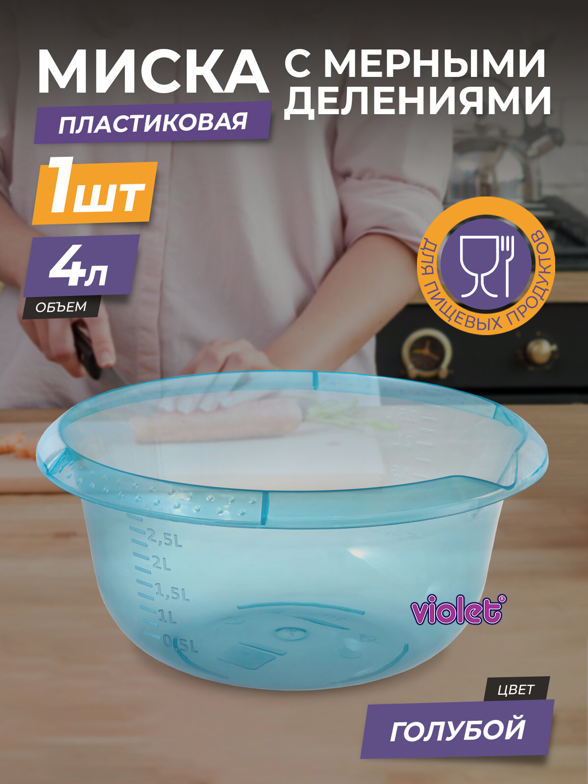 Отзывы на Миска пластиковая с мерной шкалой 4л, цвет голубой / чаша для салата / емкость для теста, миксера