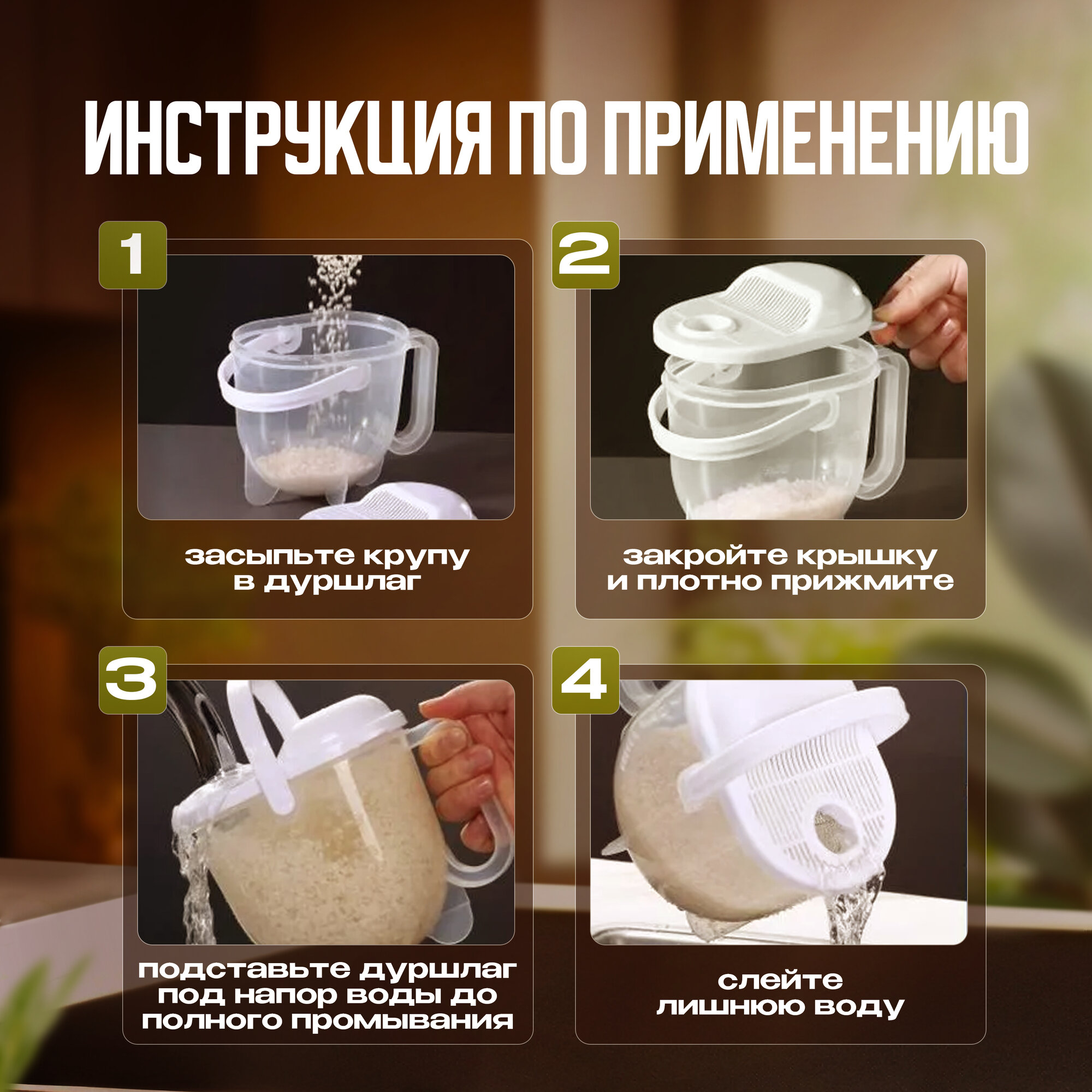 10 цен на Дуршлаг для промывания круп и ягод, пластиковая рисомойка, 800 мл