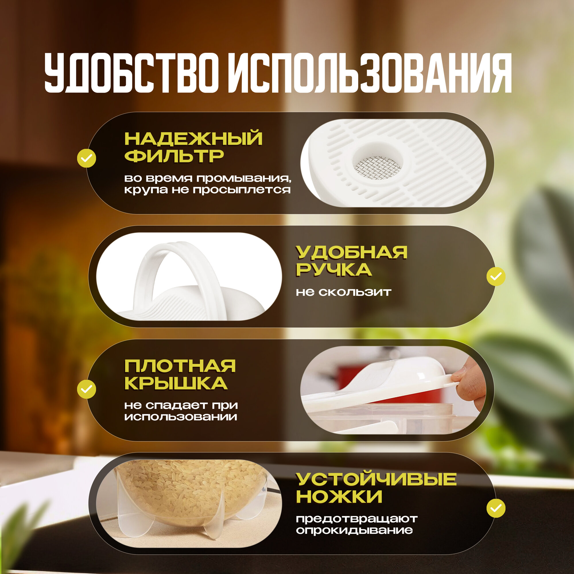 Отзывы на Дуршлаг для промывания круп и ягод, пластиковая рисомойка, 800 мл