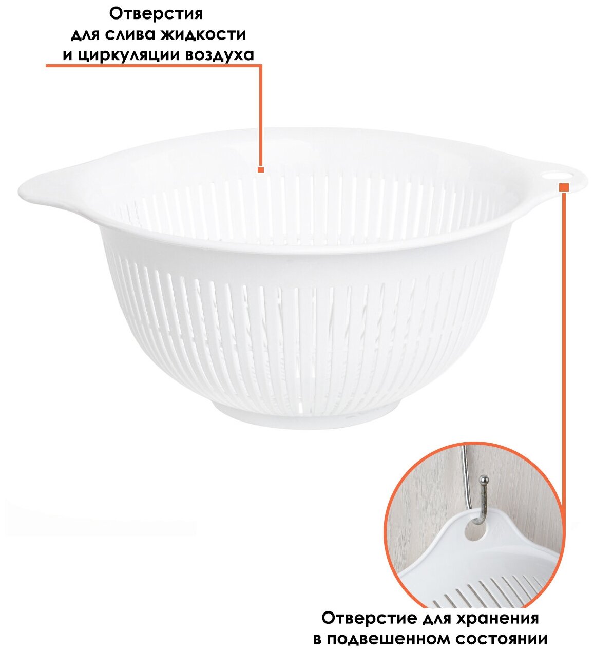10 цен на Дуршлаг пластиковый (М) 2,2 л, Д 22,5*27*11 см Nakaya