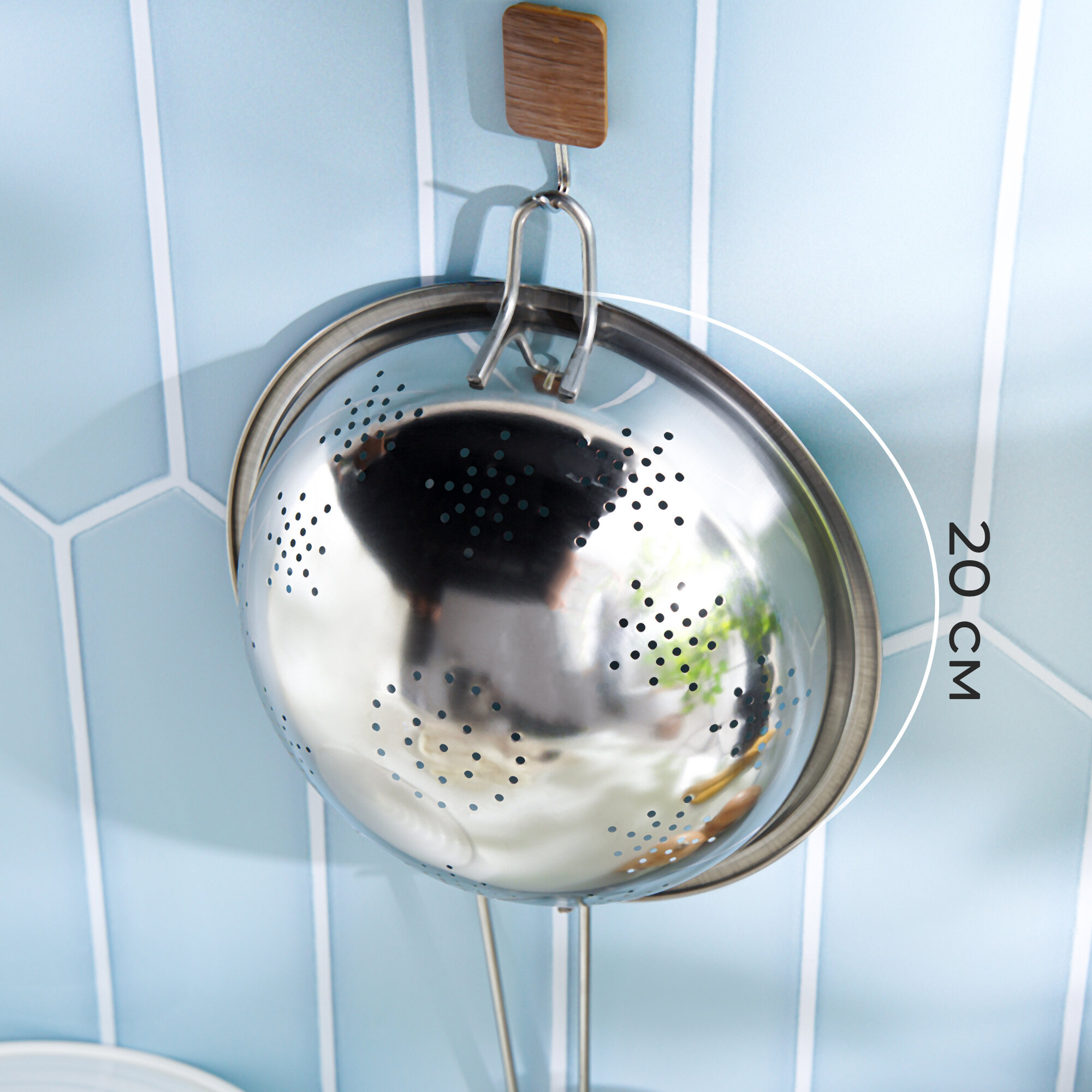 Дуршлаг из нержавеющей стали Доляна, 1,2 л, d=20 см, толщина 0,3 мм, длинная ручка информация: