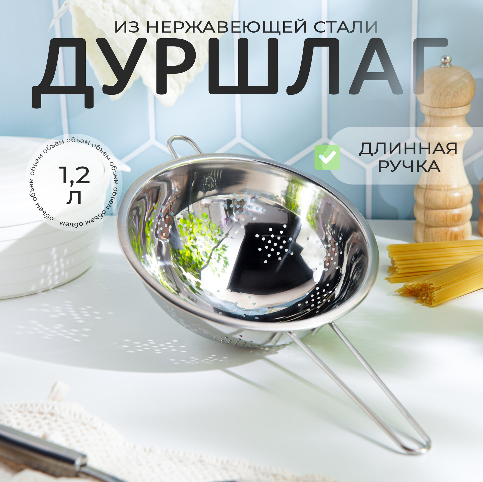 10 цен на Дуршлаг из нержавеющей стали Доляна, 1,2 л, d=20 см, толщина 0,3 мм, длинная ручка
