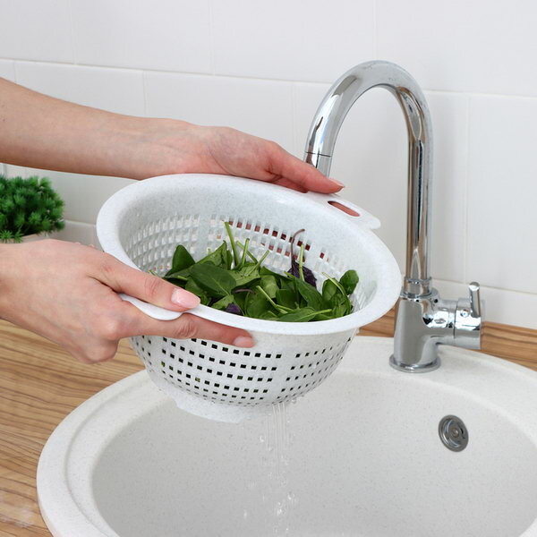 Отзывы на Дуршлаг кухонный, d=23.5 см, цвет мраморный, цвет: белый, размер упаковки: 23.5 x 12 x 27.5 см.
