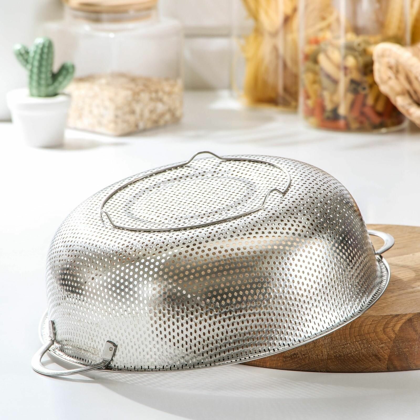 Дуршлаг из нержавеющей стали Доляна «Индия», 3,5 л, d=28 см, на ножке, две ручки