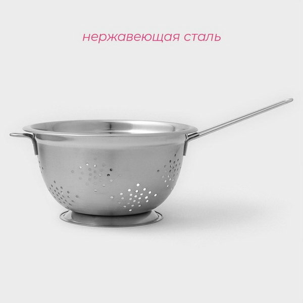 Дуршлаг 4.2 л, d=27 см, толщина 0.4 мм, на ножке, длинная ручка, нержавеющая сталь информация: