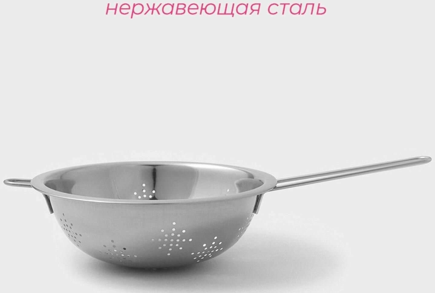 Дуршлаг «Марко», d=25 см, 43.5×25×9 см, длинная ручка, нержавеющая сталь, хромированный
