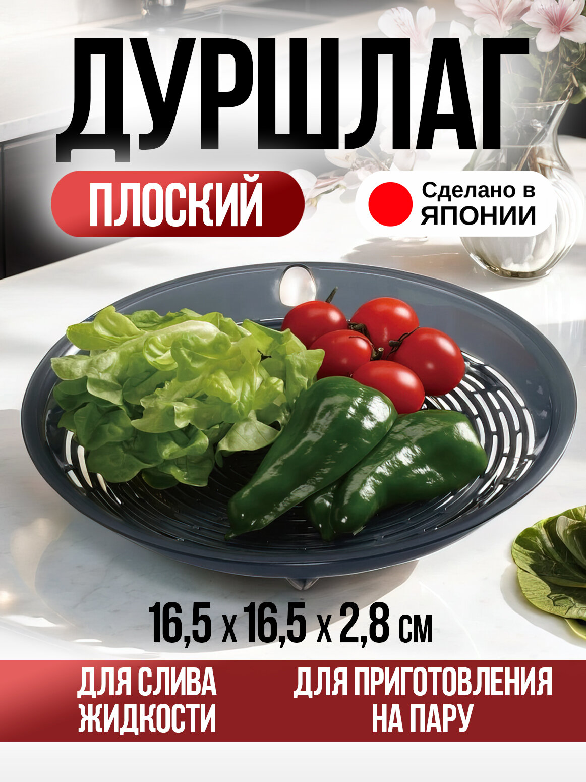 Дуршлаг пластиковый плоский 16.5х16.5х2.8 см информация: