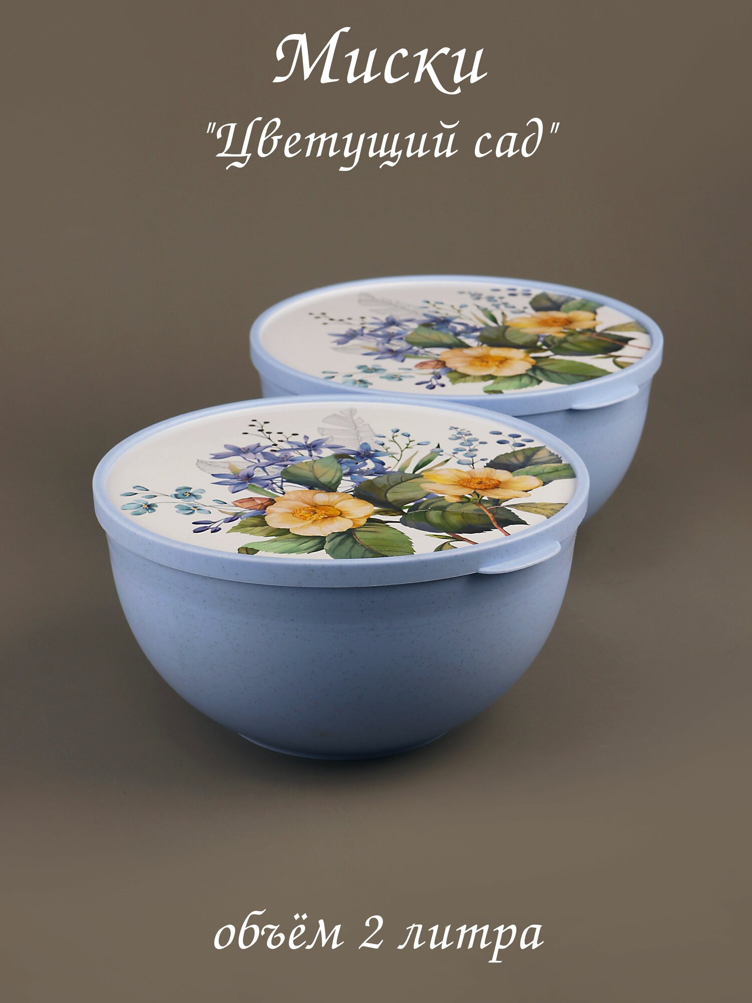 Миска пластиковая с крышкой 2 л Цветущий сад (комплект 2 шт) информация: