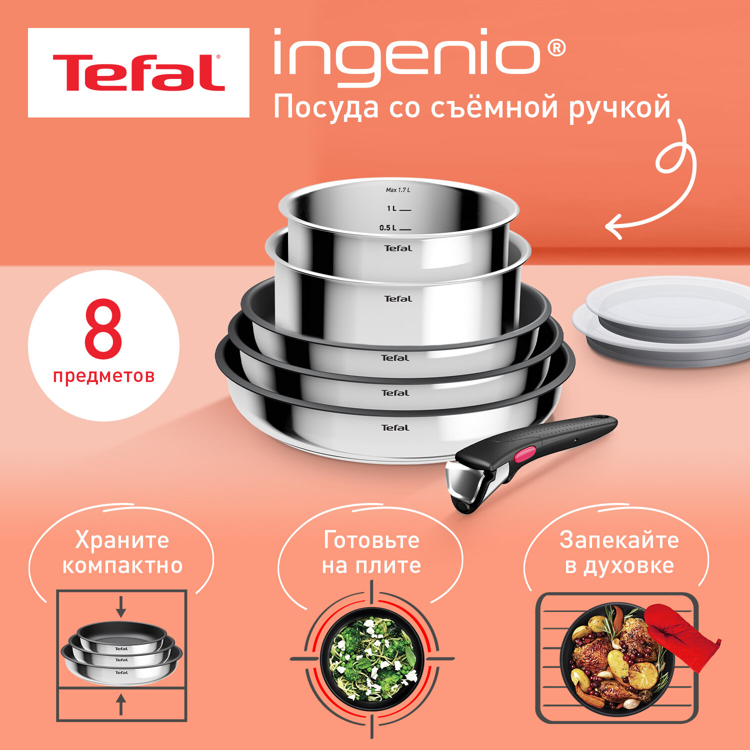 10 цен на Набор посуды Tefal Ingenio Cook Eat L881S804, 8 предметов, нержавеющая сталь