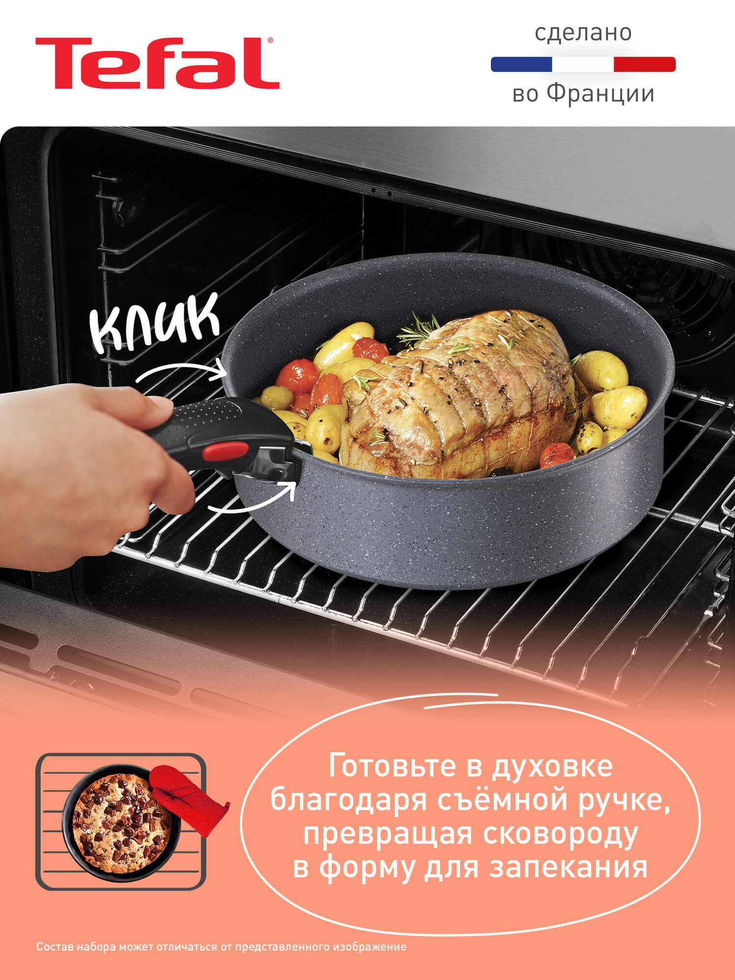 Набор посуды Tefal Ingenio Black Stone со съемной ручкой, подходит для всех типов плит, включая индукционные, Франция 9 775 ₽