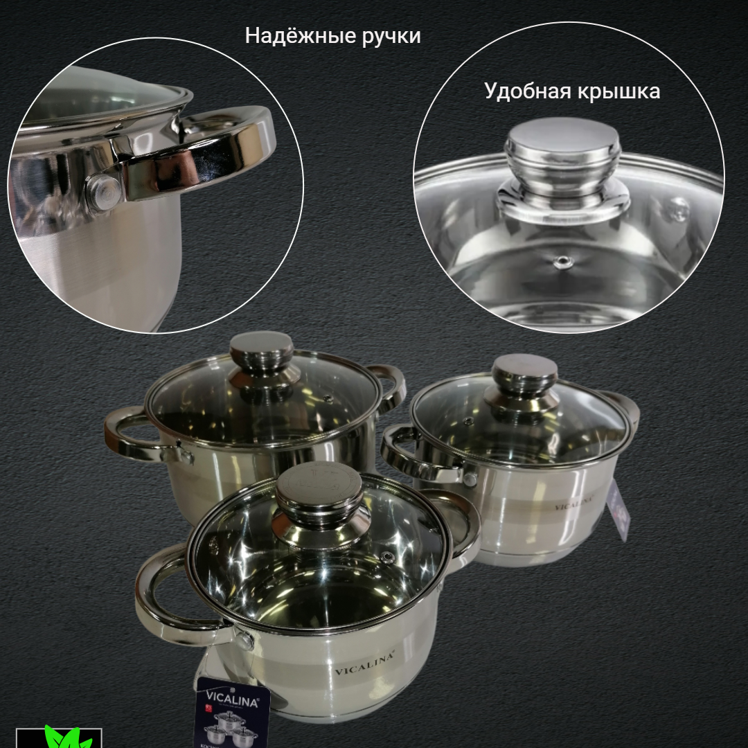 Отзывы на Набор кастрюль с толстым дном, из нержавеющей стали металлический, с крышкой, для индукции, кухонная утварь