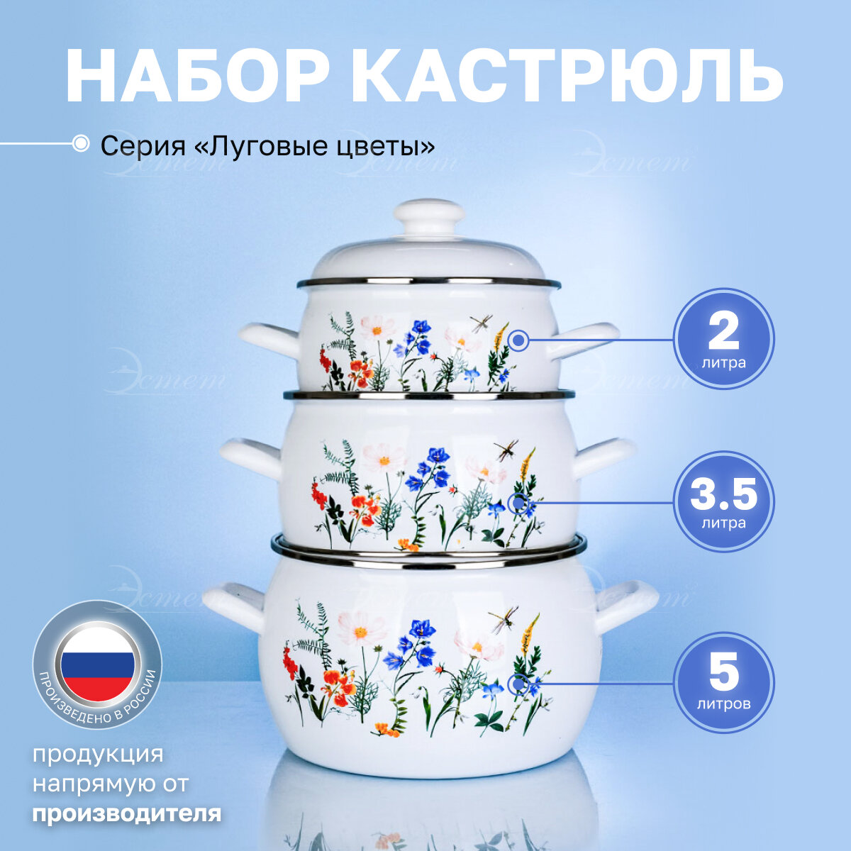 10 цен на Кастрюля эмалированная с крышкой набор из 3-х 2,0 , 3,5 и 5,0 литра