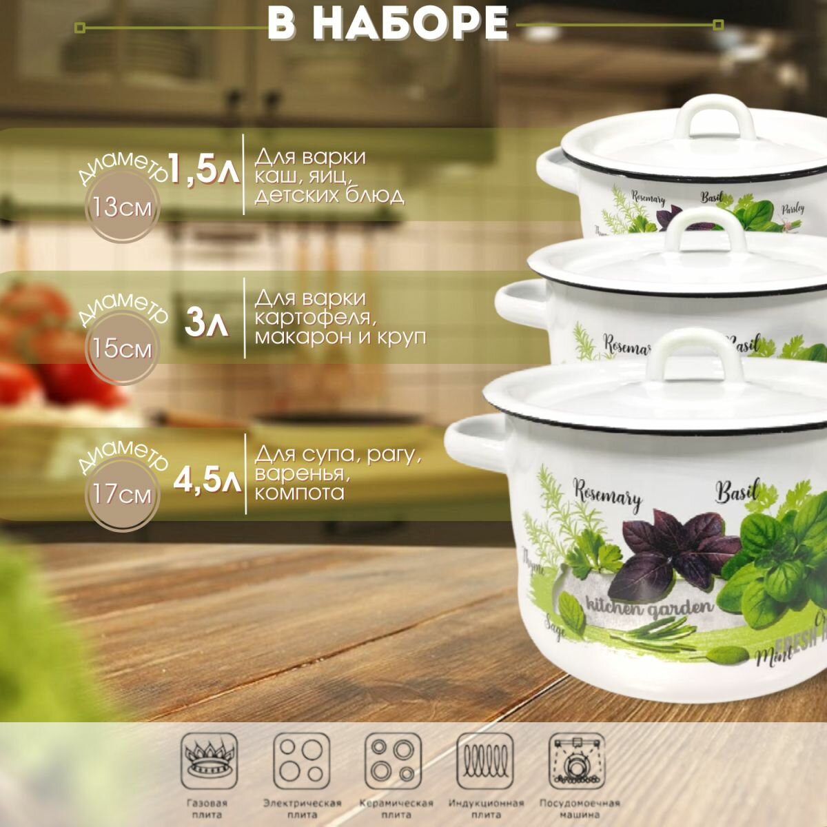 Набор кастрюль Сибирские товары Пионы, эмалированные, 2, 3 и 4 л