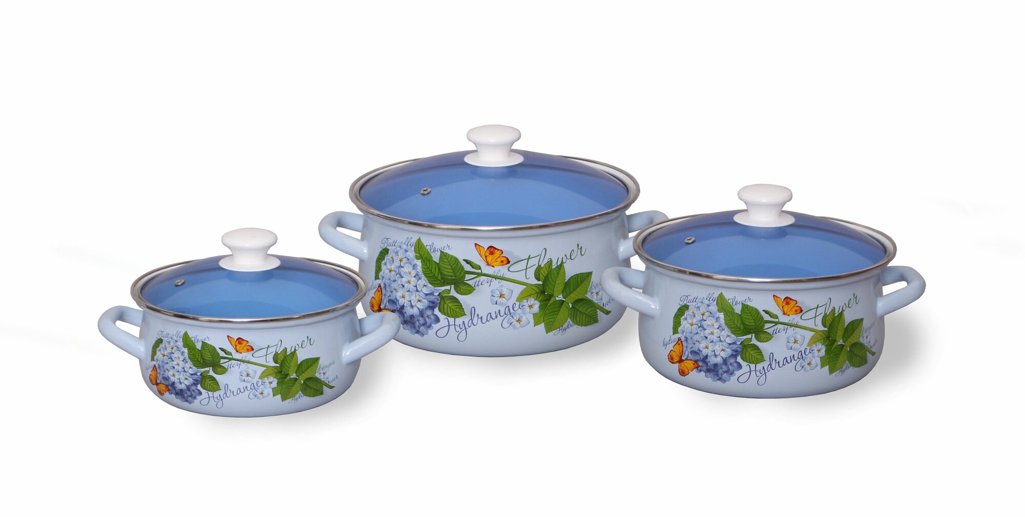 Набор кастрюль с крышками эмалированных 3 шт "Гортензия-экстра" информация: