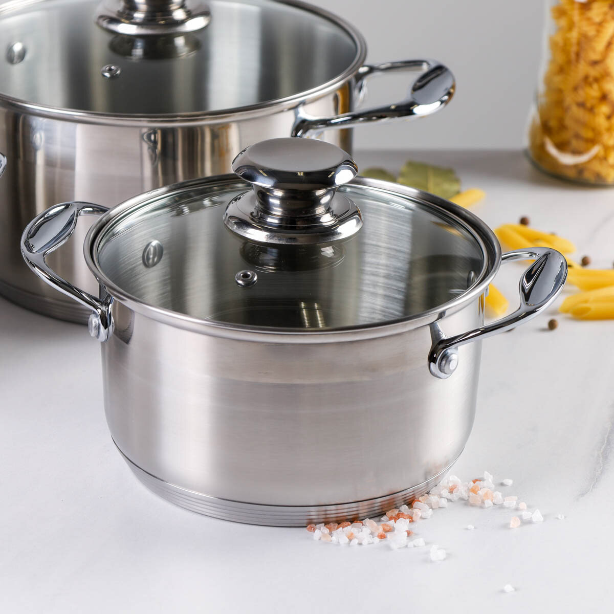 Набор посуды 6 предметов из нержавеющей стали со стеклянными крышками WEBBER BE-627/6