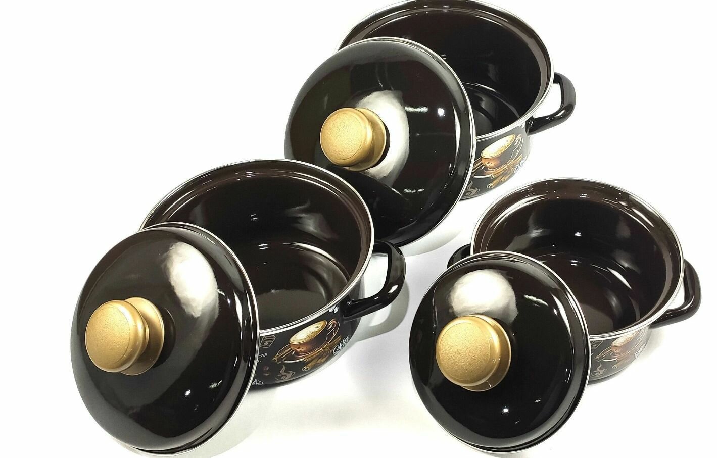 Набор кастрюль эмалированных Арабика, для индукции, с крышками, 1, 1,5, 2,3 л информация: