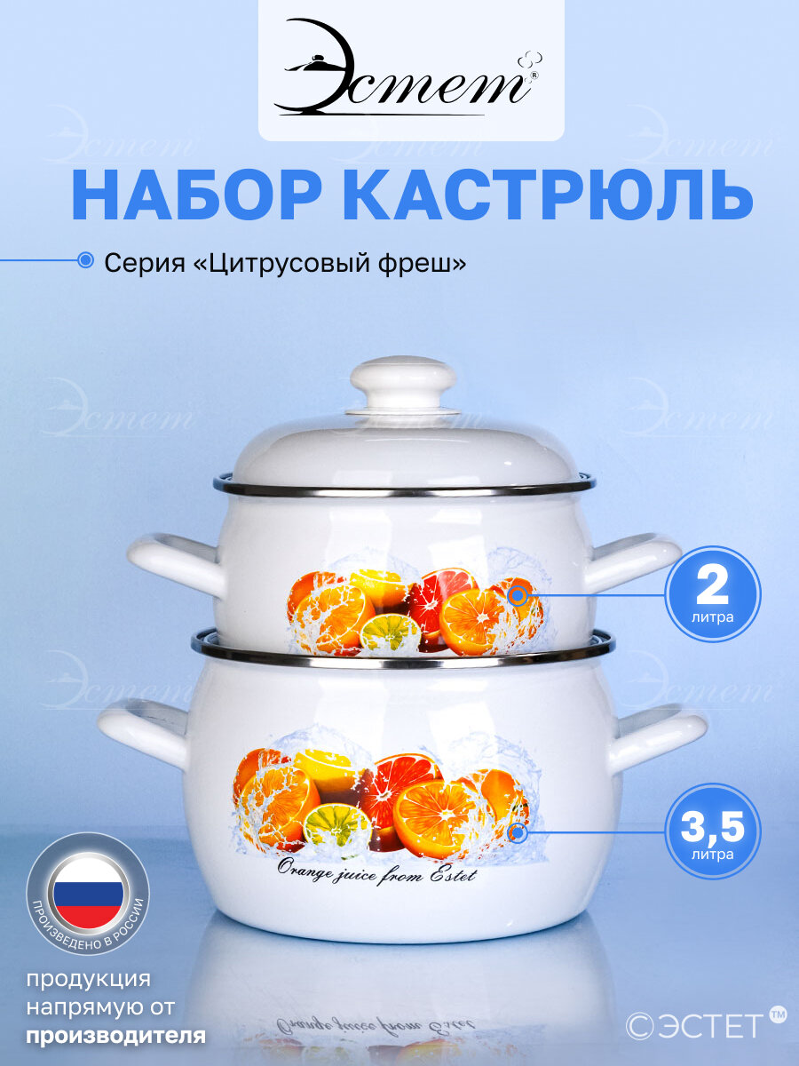 10 цен на Кастрюля эмалированная с крышкой набор из 2-х 2,0 и 3,5 литра