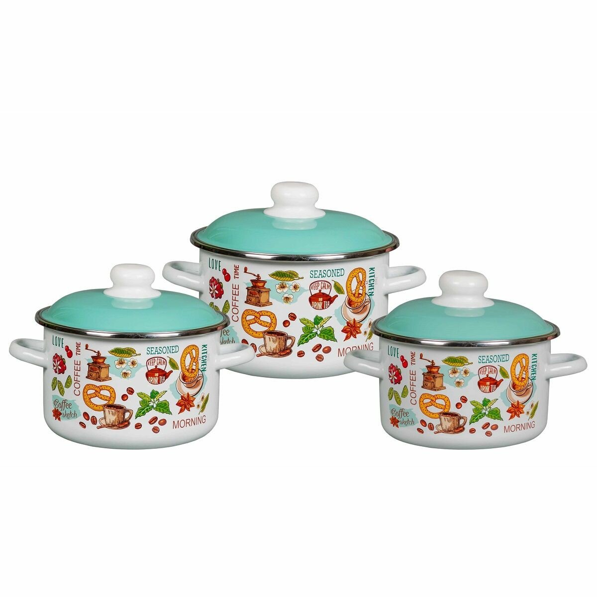 10 цен на Набор кастрюль Утренний кофе 6КВ021М, кастрюли 2/3/4л, белоснежный