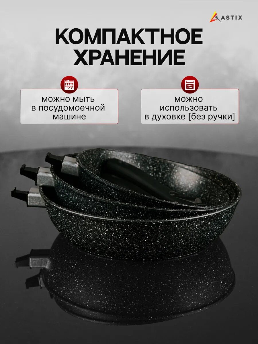 Набор сковородок Polaris EasyKeep-3D со съемной ручкой, антипригарное покрытие, подходит для индукционной плиты
