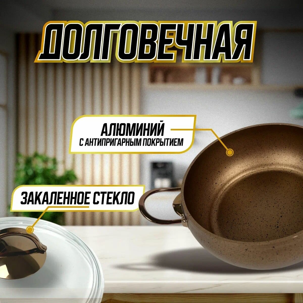 Набор посуды для приготовления OMS, Gold золотые штрихи высокие с антипригарным покрытием, с крышками, 9 предметов 18 300 ₽
