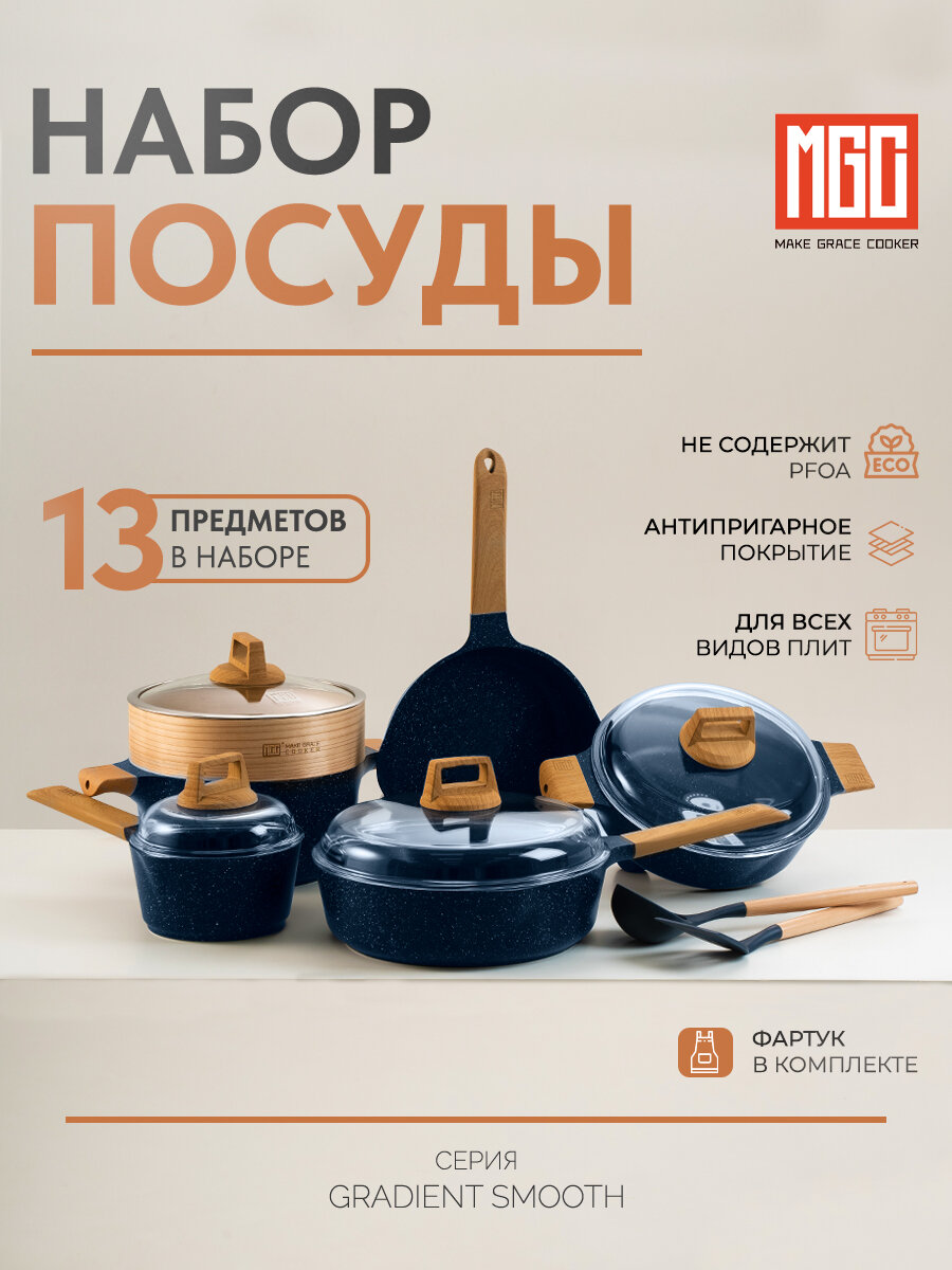 10 цен на Набор посуды MGC, 13 предметов, антипригарное покрытие, для всех типов плит