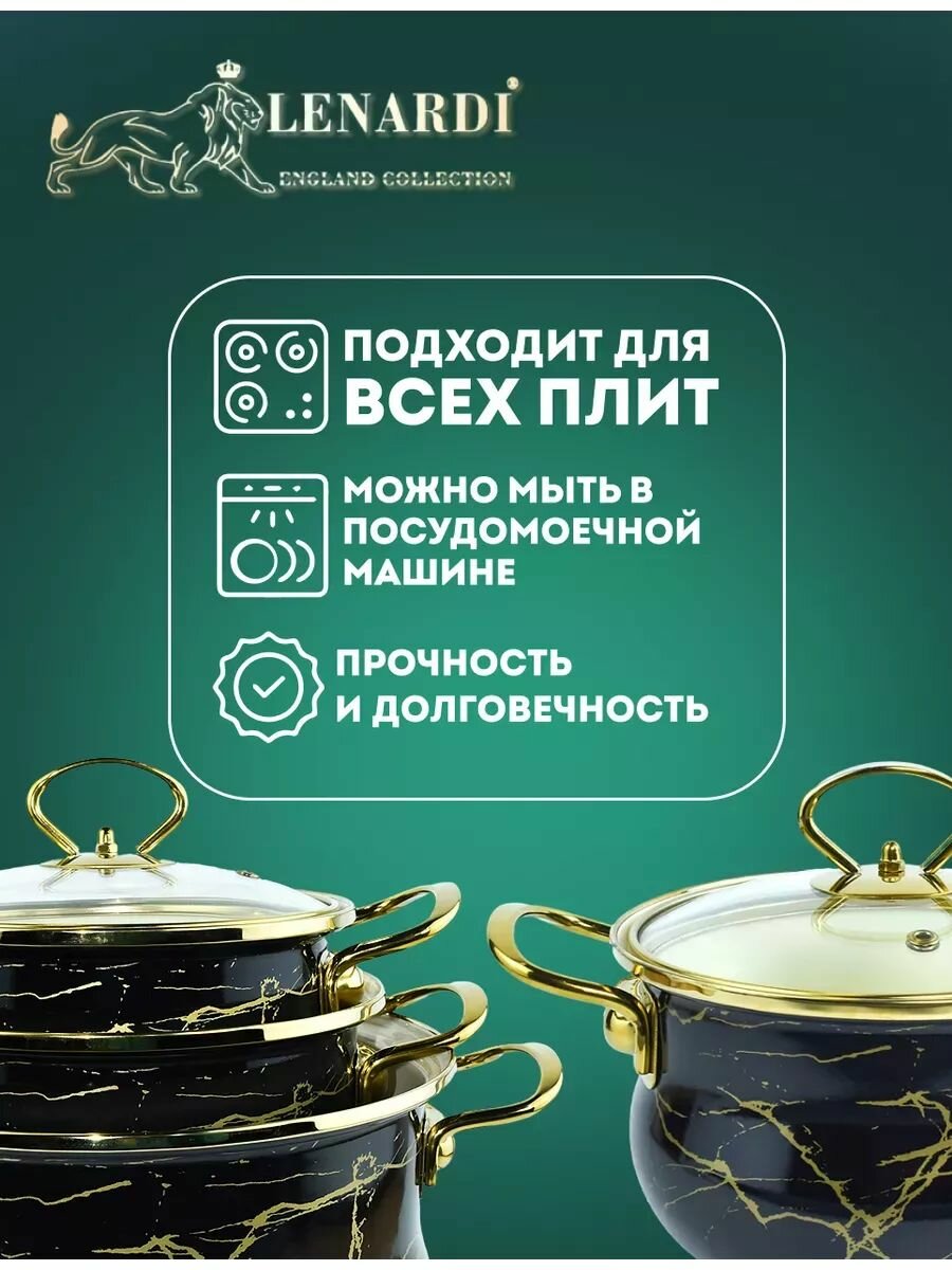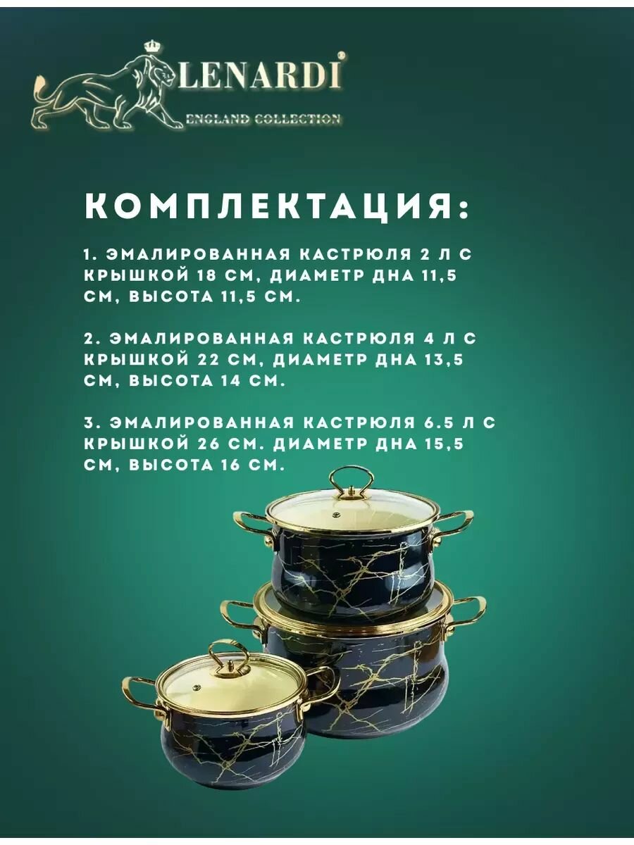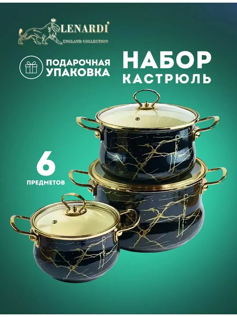 10 цен на Набор эмалированных кастрюль c крышками 3 шт. Lenardi. Коллекция "Чёрный мрамор" в подарочной упаковке.
