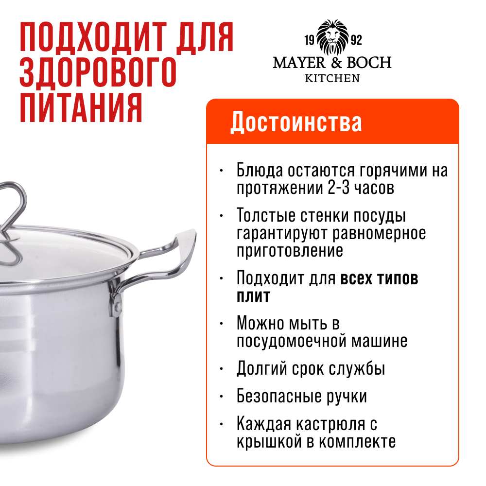 Набор кастрюль из нержавеющей стали с крышками MAYER&BOCH 29353 информация:
