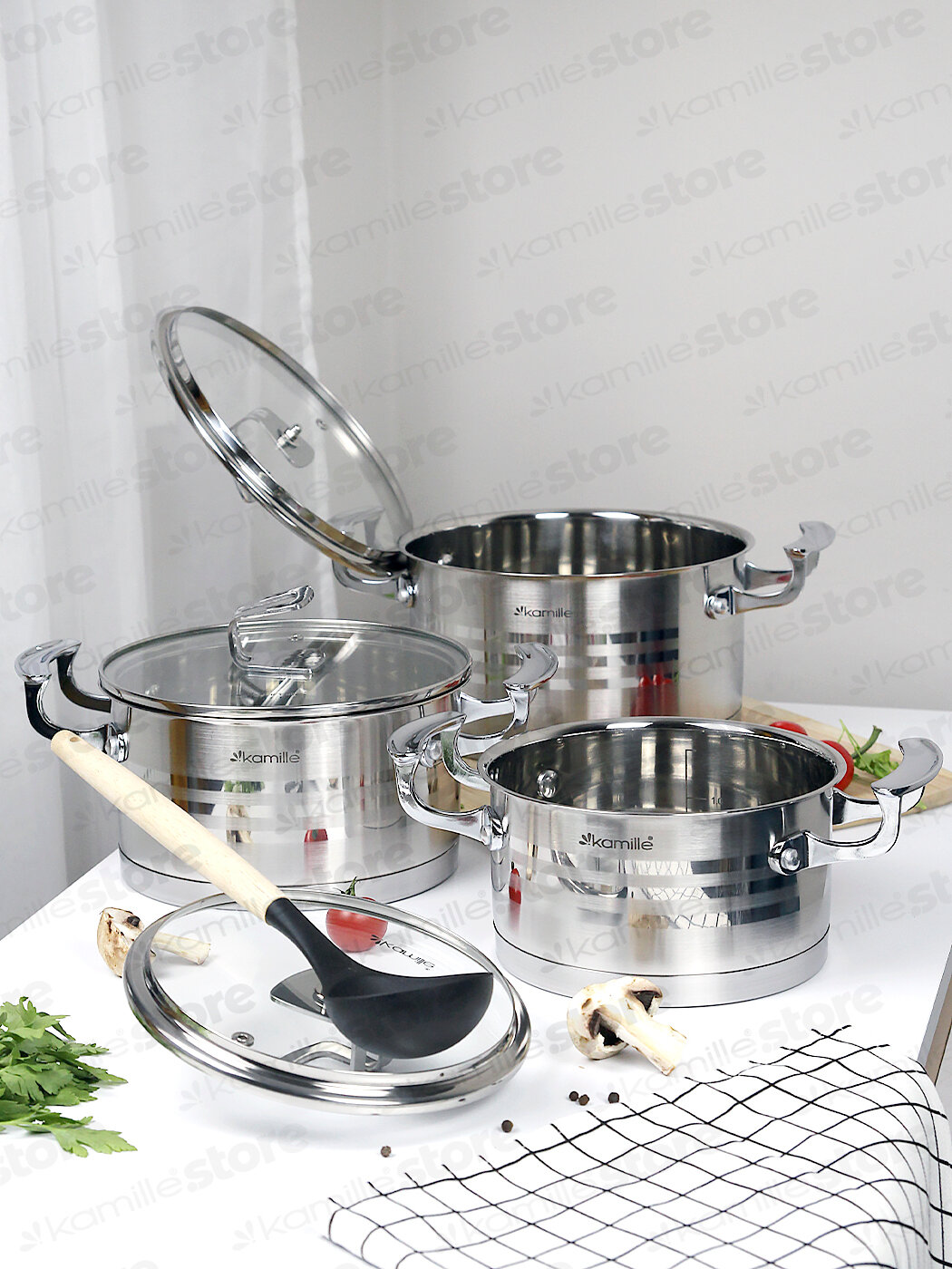 Отзывы на Набор кастрюль 6 предметов 1,7 л; 2,4 л; 3,1 л. Kamille KM 5861 из нержавеющей стали (серебристый)