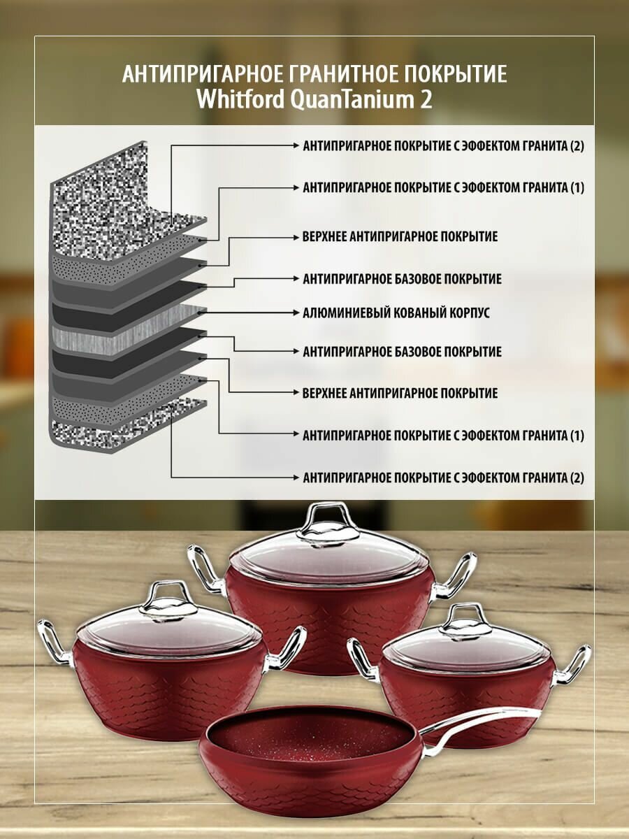 Антипригарный набор O.M.S Collection, 7 предметов, алюминий, красное покрытие информация: