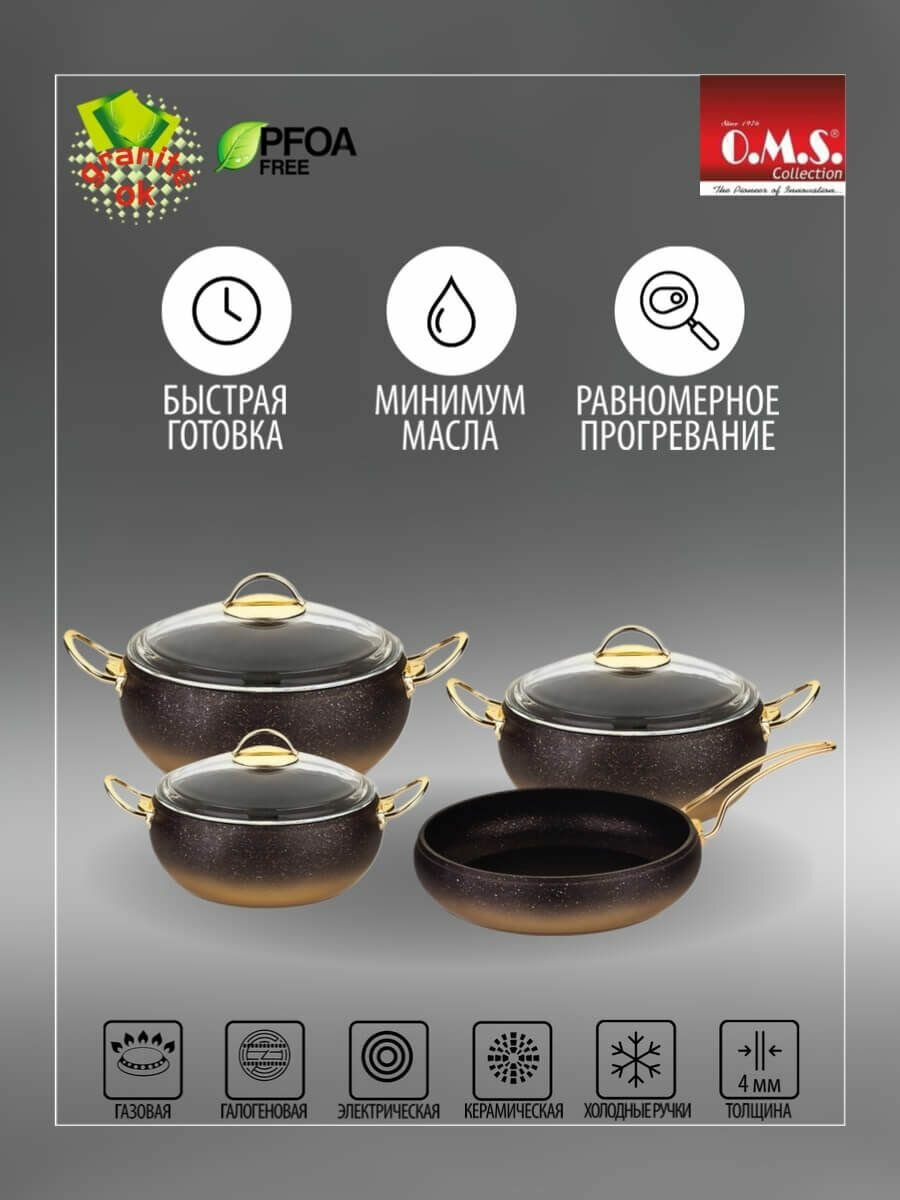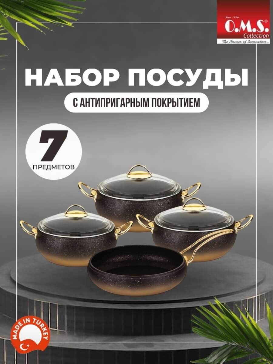 Набор посуды O.M.S Collection, антипригарное покрытие, 7 предметов, золотой информация:
