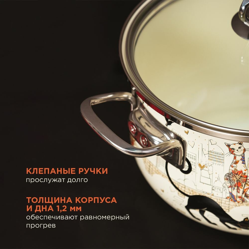 Набор кастрюль Agness "Парижские Коты", 3 шт, эмалированные, с крышками, для всех видов плит информация: