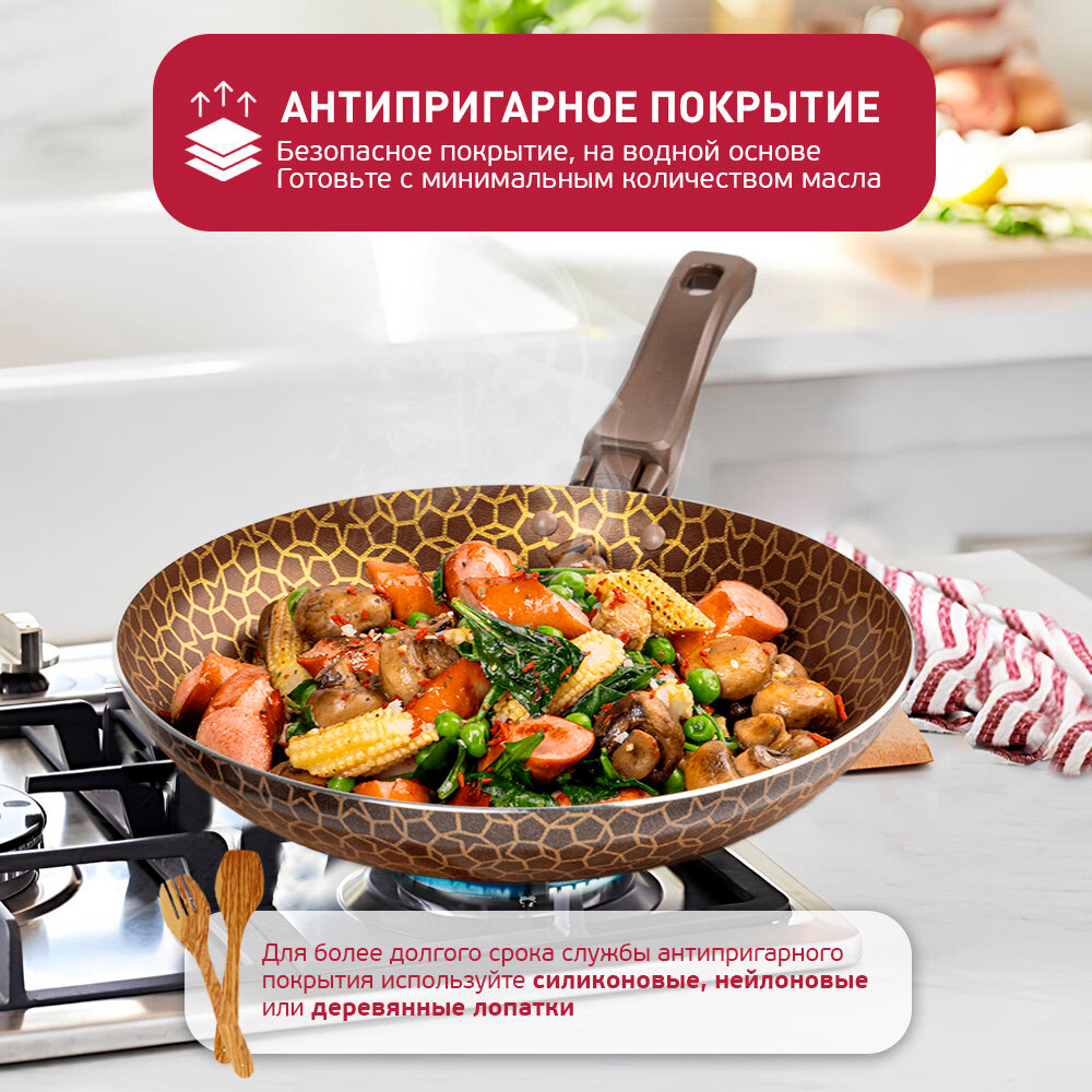 10 цен на Сковорода штампованная с антипригарным покрытием Южное сияние, D28 см