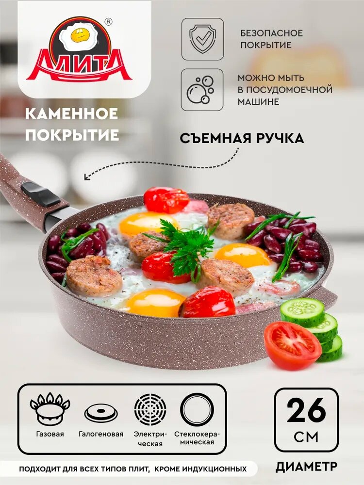 Сковорода Алита Хозяюшка Природный камень с антипригарным покрытием, со съемной ручкой, из алюминия, диаметром 28см 2 842 ₽