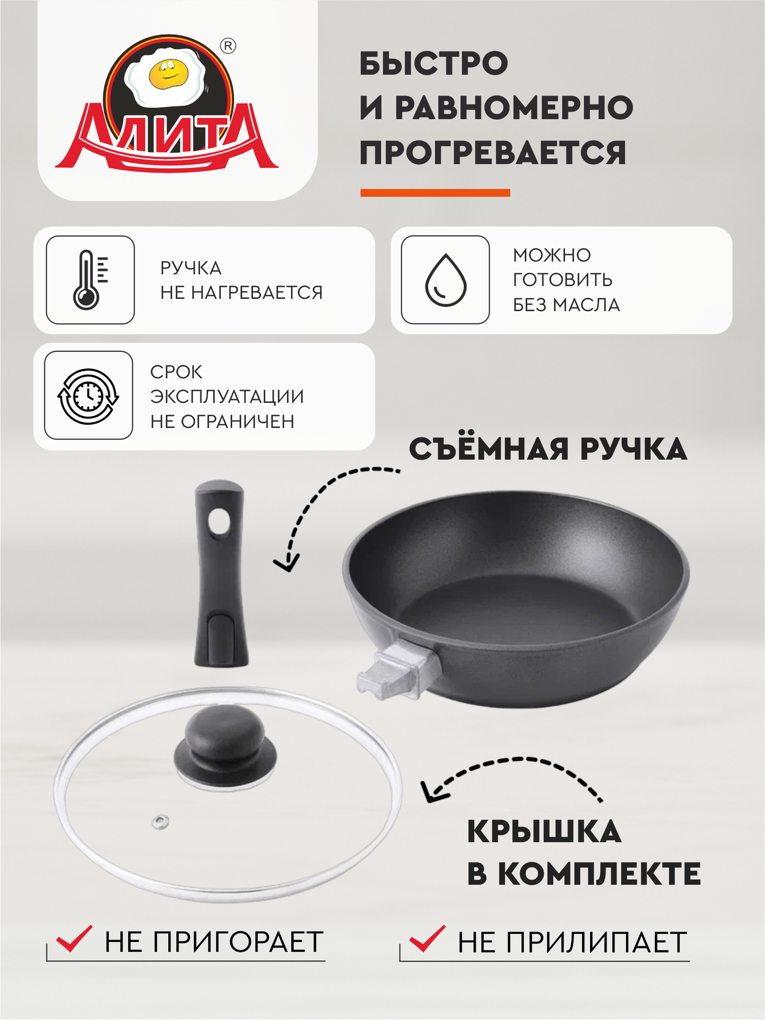 Отзывы на Сковорода с крышкой 20 см маленькая со съемной ручкой глубокая с толстым дном, Антрацит
