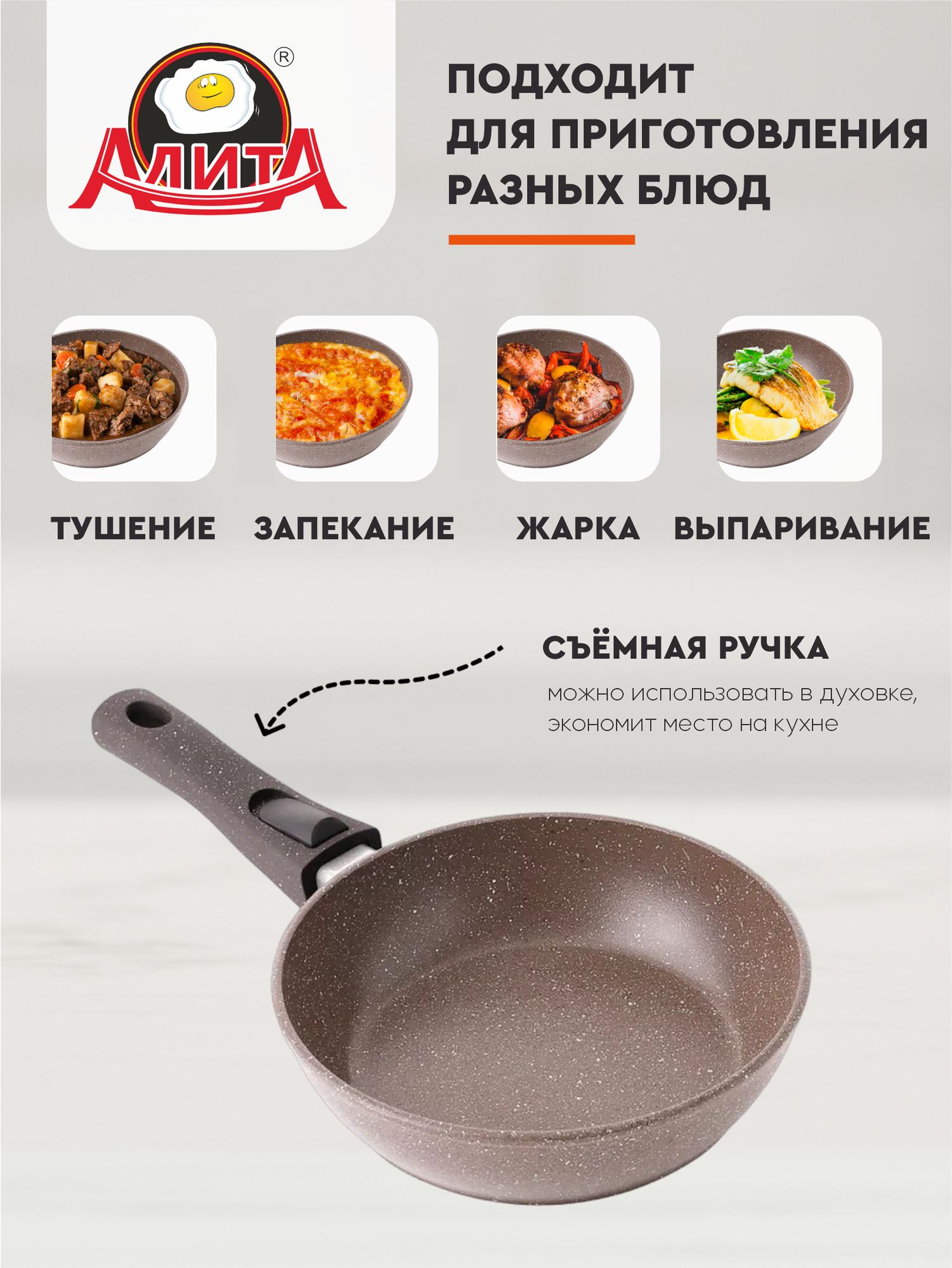 10 цен на Сковорода с крышкой 20 см маленькая со съемной ручкой глубокая с толстым дном, Браун