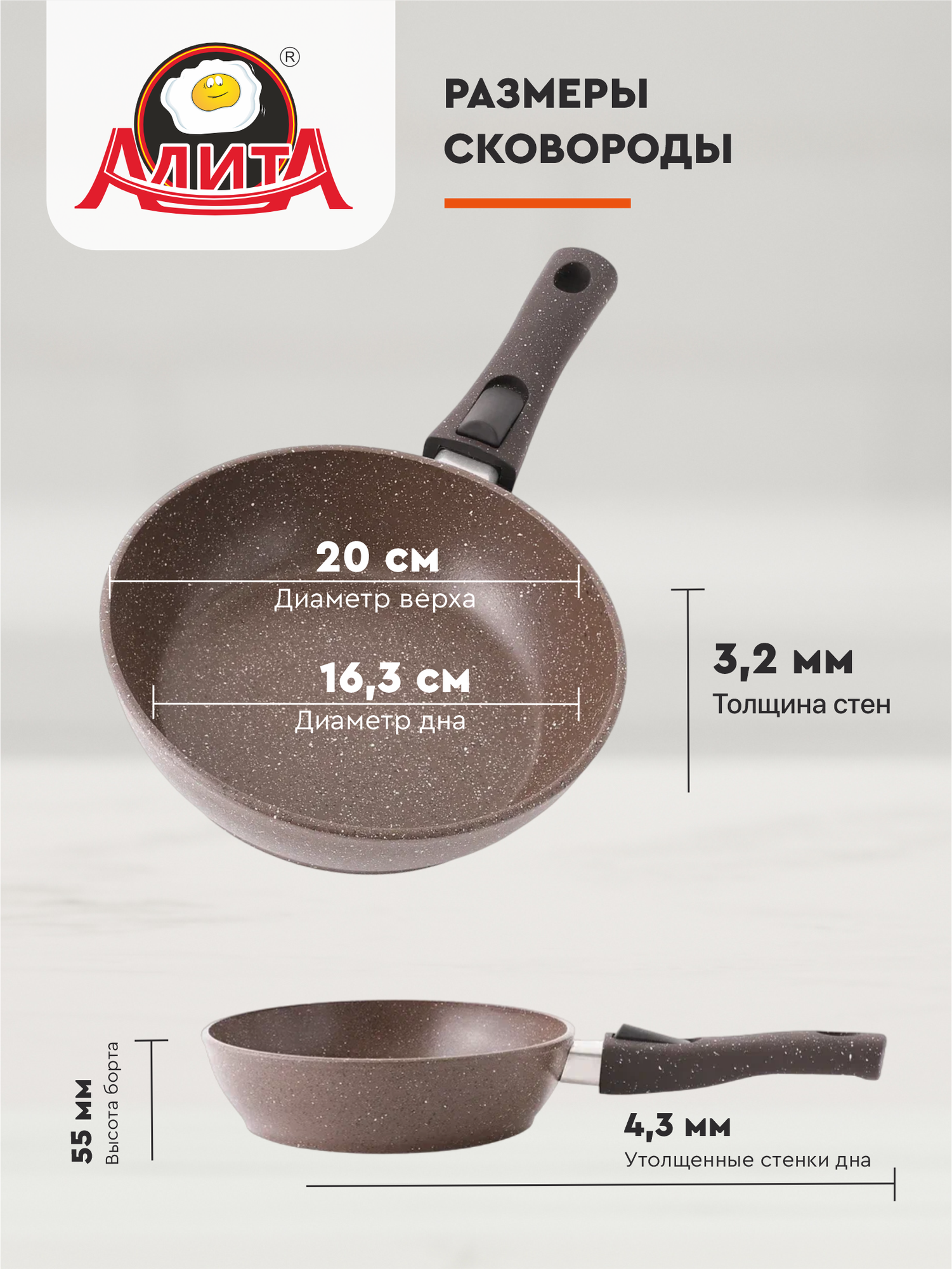 Сковорода с крышкой 20 см маленькая со съемной ручкой глубокая с толстым дном, Браун информация: