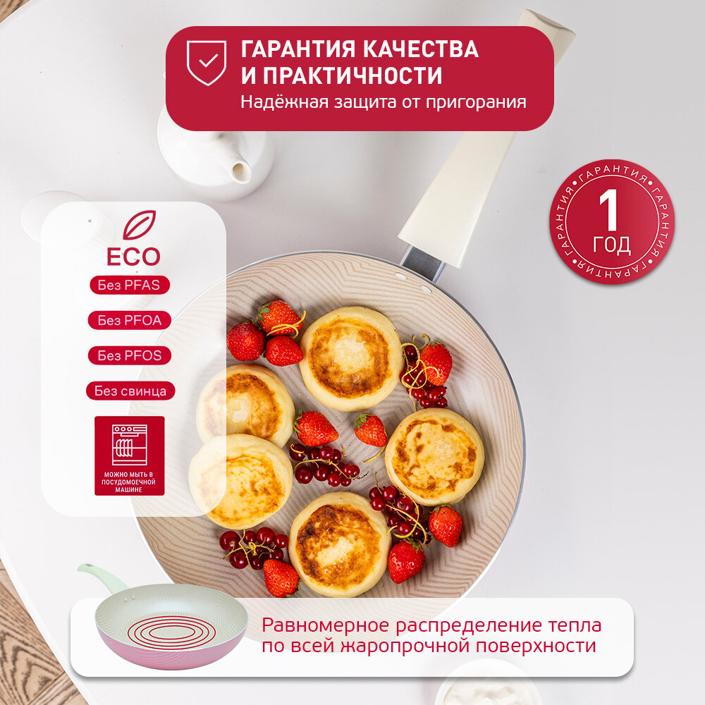 Сковорода 26 см без крышки с антипригарным покрытием, Розовая жемчужина информация: