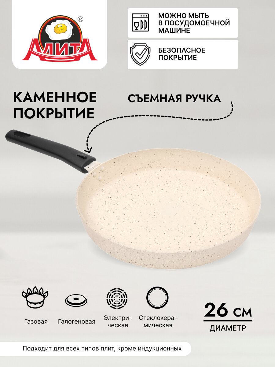 Сковорода для пиццы и пирогов со съемной ручкой 26 см большая с толстым дном, Природный камень 1 760 ₽