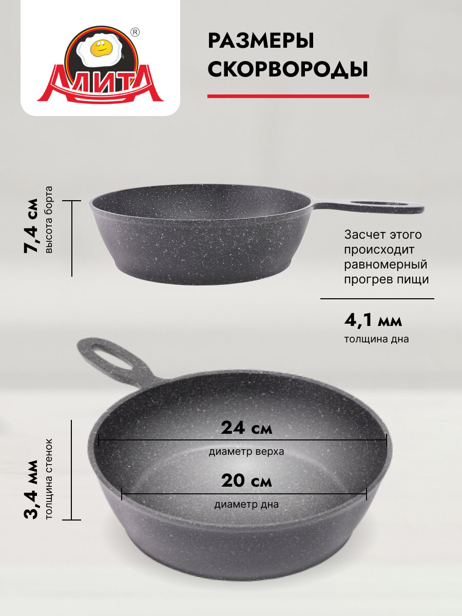 10 цен на Сковорода сотейник 24 см с толстым дном глубокая литая, Природный камень