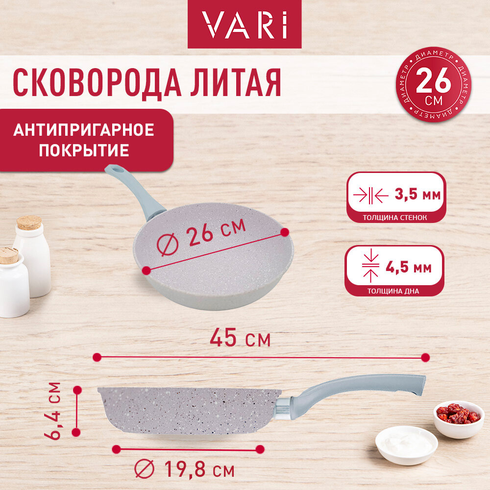 Сковорода литая 26см без крышки из безопасного пищевого алюминия с антипригарным покрытием и жаропрочной бакелитовой ручкой, Прованс информация: