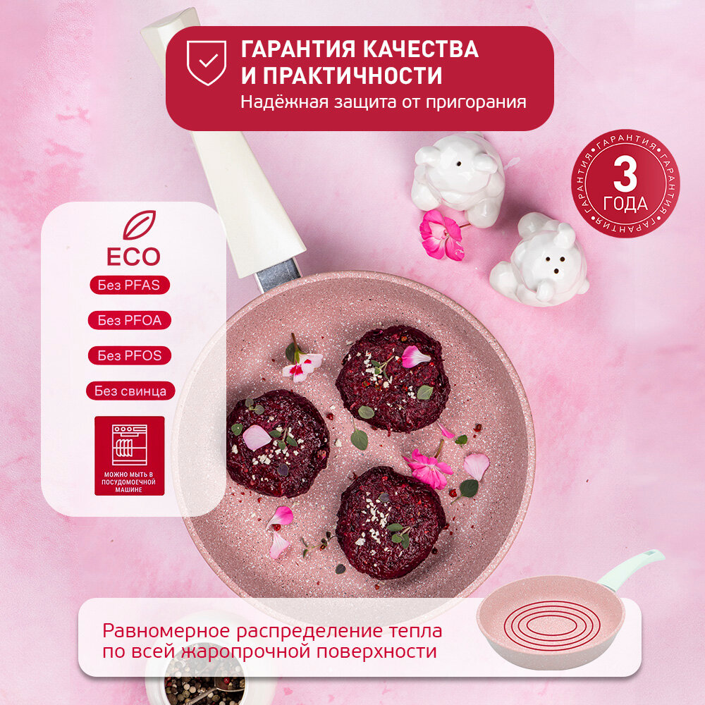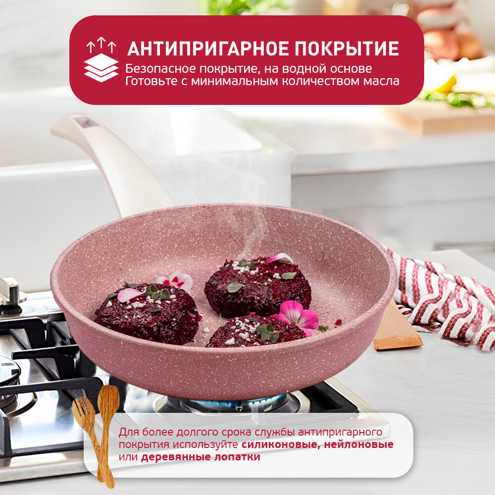 10 цен на Сковорода литая 26см без крышки из безопасного пищевого алюминия с антипригарным покрытием и жаропрочной бакелитовой ручкой, романтика